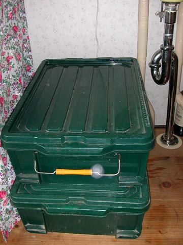 キッチンの隅において野菜くずを処理。