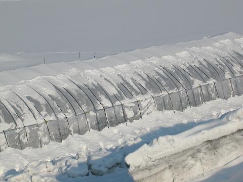 しかし悪天候で、まだハウスにビニールがかかっていません