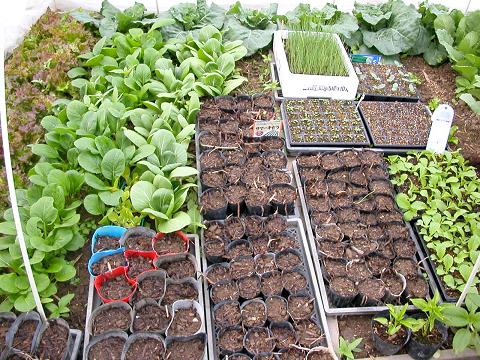 4月15日ころに播種したカリフラワー、サボイキャベツを定植。